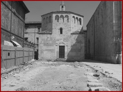 10. A third road (a North-South cardo) has not been dug but its presence, crossing the decumanus just in front of the Cathedral, can be assumed by other hints coming from the archaeological investigation.