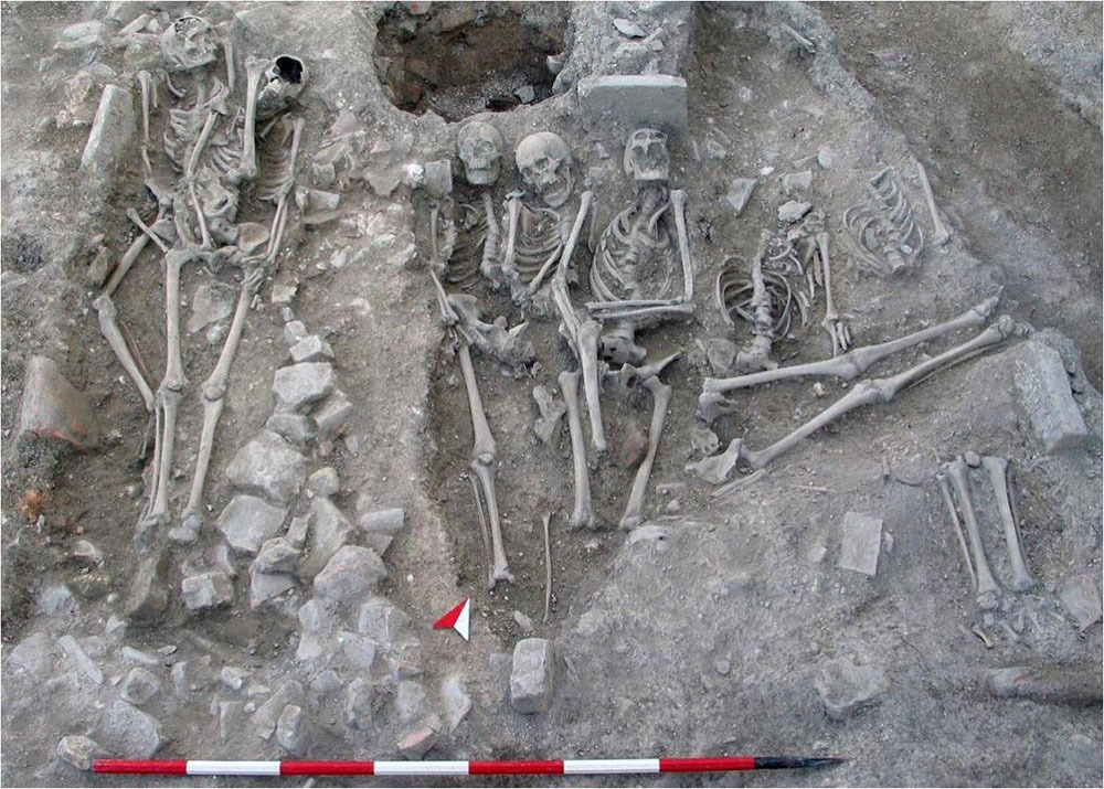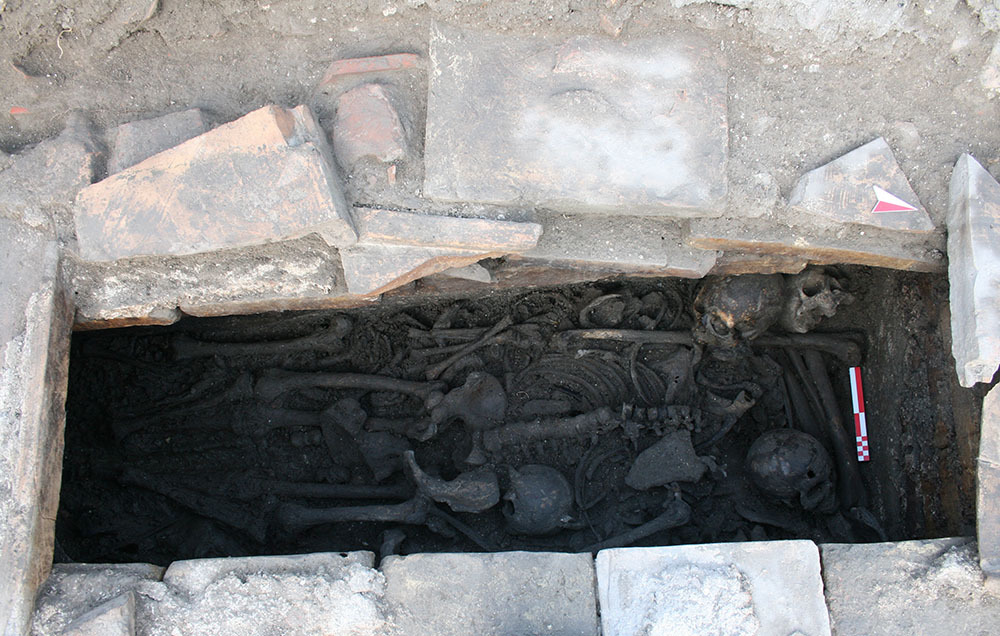 New systematic excavations started in 2006, initially with an international European project between Università di Bologna, Leicester University, CEU of Budapest and Universitat de Barcelona [7]. During this excavation some graves were found along the northern wall and later covered, inside the basilica, in the northern nave and one in the choir [8]. The church was a pole of attraction for burials, according to the symbolic hierarchy of space in Christian cemeteries. The following excavations showed how burials characterised the entire life of the site of San Severo and that funerary practice changed and developed according to the life of the basilica and the monastic complex. In this way the burial practice is characterized by intercutting graves and deeply stratified, a typical feature of Medieval cemeteries [9].
