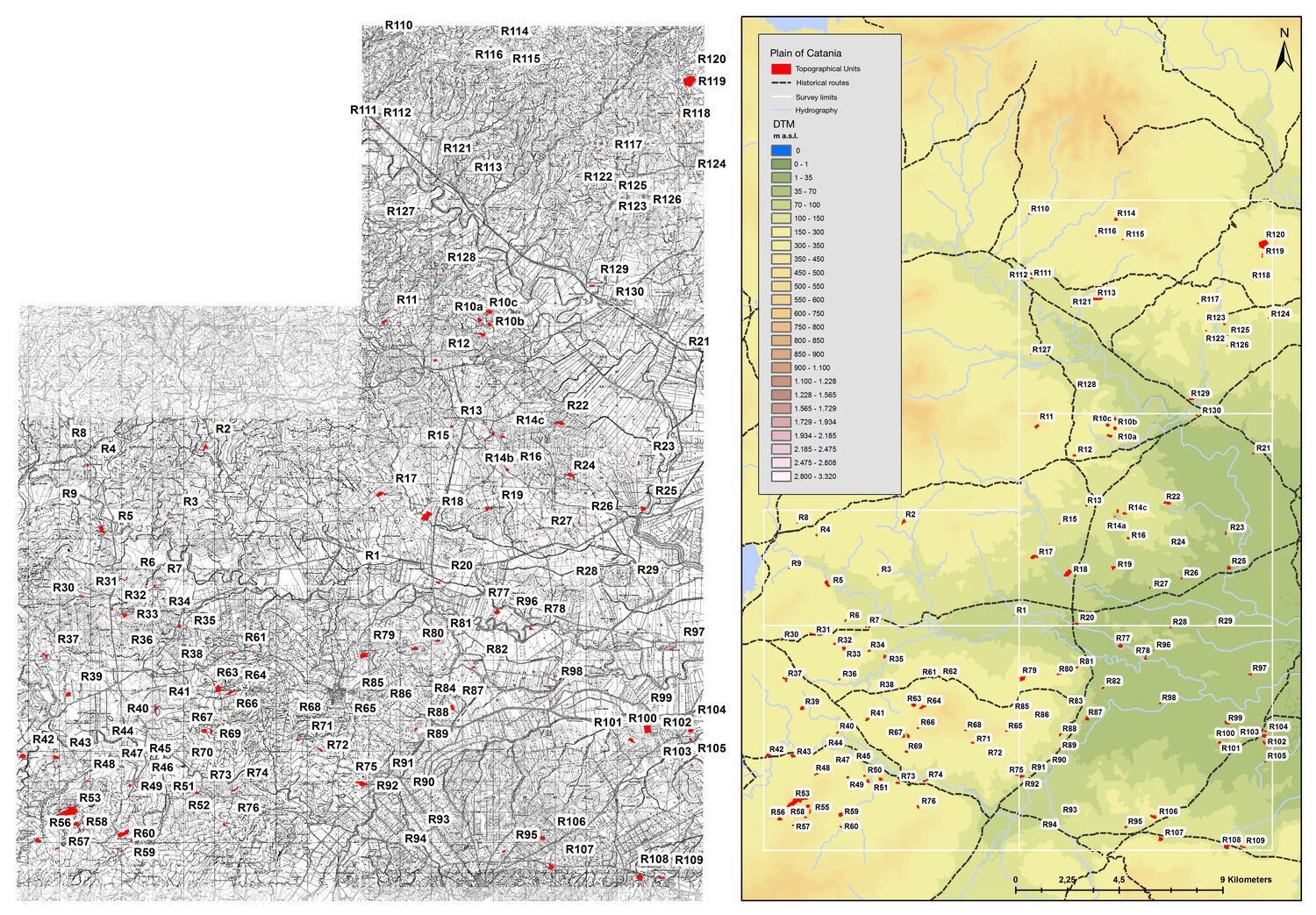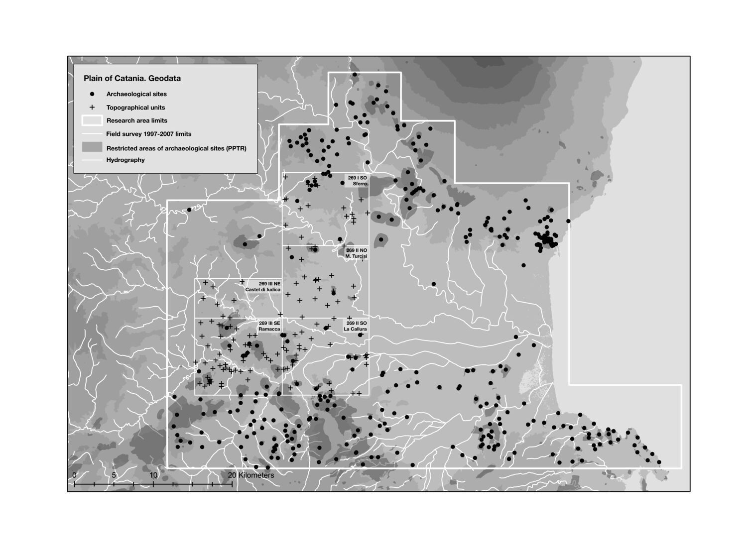 • archaeographic data from the field surveys project on the western edges of the Plain of Catania (1997-2007) [16] (Fig. 5);