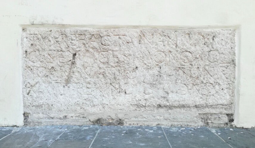 Around 1747 some elements of the defensive structure were reused for the construction of the façade of the Bishop’s Palace, including a plinth with an epigraph commemorating its construction [9] (Fig. 4). In 1142 Varese reported the construction of a new church according to the will of the bishop Presbiterio [10]; the remains of San Benedetto of Benevento were moved into the new building during the church’s consecration. However, another source only traces the displacement of the Saint in the 15th century, during the last renovation of the building [11]. In 1192 the religious members of the Church of San Pietro in Castello became part of the order of the Canons Regular of St. Agostino. In addition Cappelli states that in 1289 the Church was under reconstruction [12]. Finally, according to Rodilossi [13] the current appearance of the building apparently dates back to the reconstruction of the church between 1466 and 1472 and the work of the Comacine masters Giovanni di Ambrogio, Domenico di Donato and Cristoforo di Andrea, when the plan was presumably reduced and it became a single nave [14]. Once more the literature disagrees about the interpretation of the facade, i.e. whether the prospect relating to the last phase was the reduced reproduction of the previous one, as Cappelli believes, or whether it was pertinent to a new project, detached from the ancient model, as Fabiani [15] thinks.