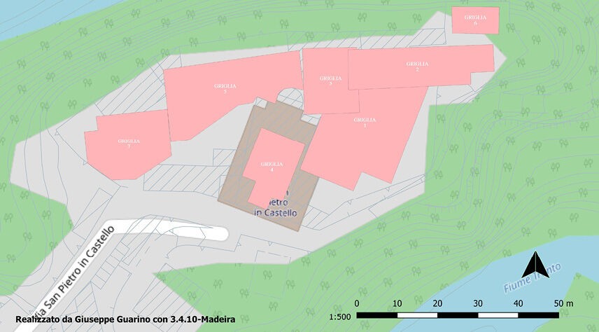 The surveys carried out of San Pietro in Castello highlighted important information which improves our knowledge of the site. The analysis of the elevations underlined the presence of pre-existing structures in the façade of the church and in the aforementioned postern that seem to be part of the ancient castrum, a structure certainly existing in the 11th century.