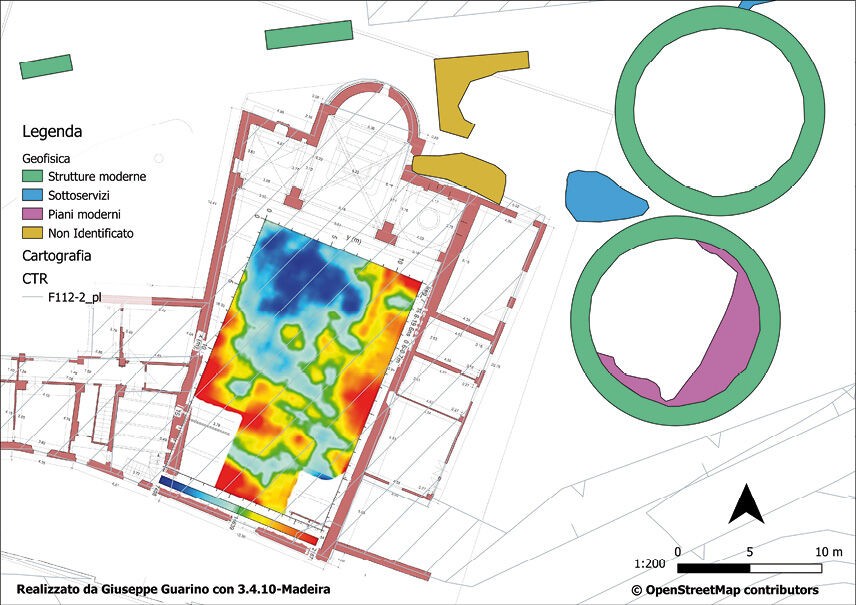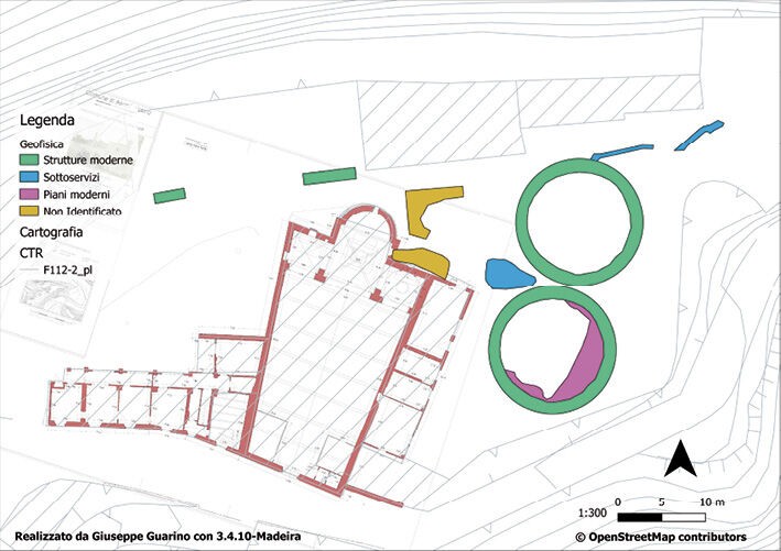 However, in order to ascertain the geophysical data, i.e. to understand the function and chronology of these structures and their relationship with a more ancient cultic building and/or their relationship with the castrum, it would be necessary to carry out an archaeological excavation in correspondence with the anomalies found, especially inside of the church, a survey that would make the archaeological repository understandable and connect all the collected information.