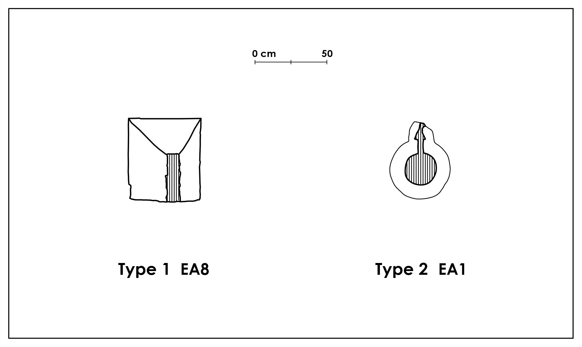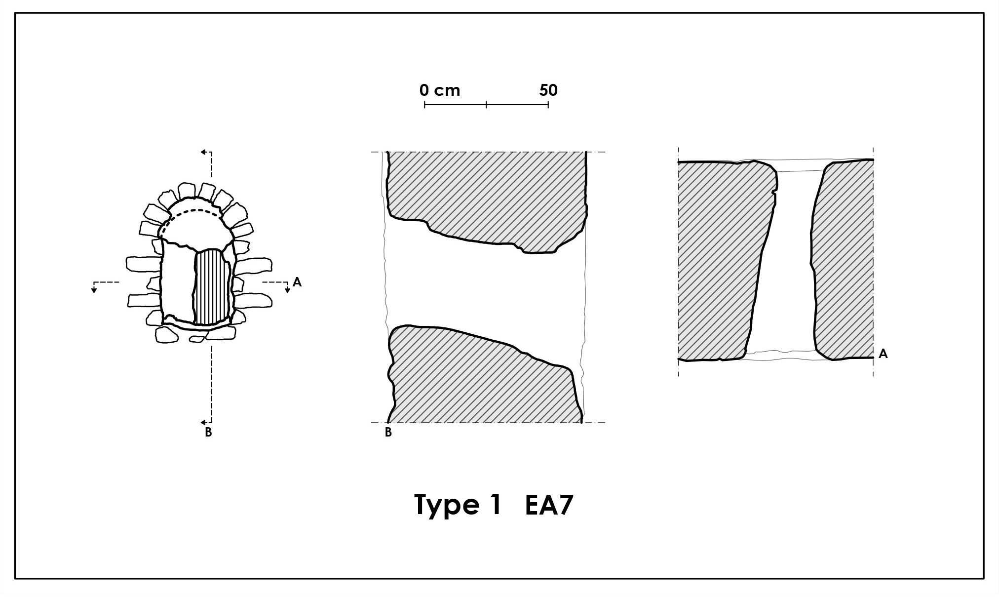 | E1 | Structures in mixed materials: roughly refined stone blocks and a minor presence of bricks. Blocks are small, reused and lacking in refining of their surface. They had been irregularly assembled, leaving mortar joints with varying thickness. Bricks are also reused and had been utilised in fragments. |