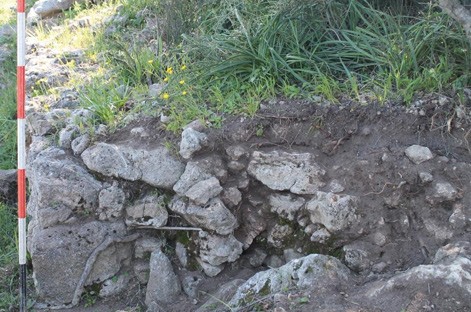 The plateau, taking advantage of the geomorphological features of the site, is installed directly on the rock, which was probably already prepared to receive the first row of blocks, especially at points strategically less important and less vulnerable.