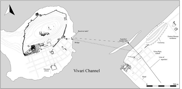 Fig. 9. Map of the acropolis of Bouthrotum and of the suburb of the Vrinë Plain during the 2nd century AD (Greenslade 2013).