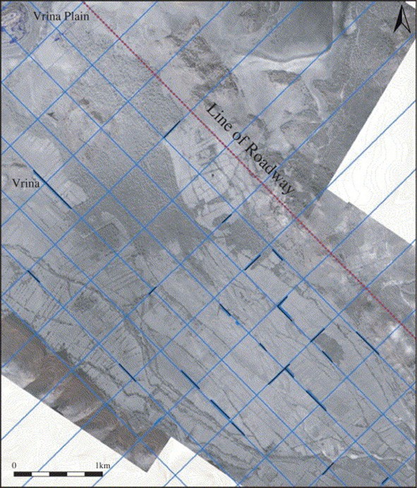 This remarkable urban development did not remain isolated but was accompanied by a remodeling of the land, with the centuriation that expanded from Vrinë towards the south, draining large areas that before were dominated by wetlands. The urban planning and the centuriation had a similar orientation, with a difference of only 6 degrees. We can assume that the division of lands became necessary before the colony while the urban development on the Vrinë plain could have been expanded later. Even the road system that branched out into the surrounding region was part of this rational organization of urban space and the surrounding landscape. Probably the centuriation followed the main road that already crossed the plain from Bouthrotum towards Nicolpolis, through Çuka Aitoit. This topographic organization of the Vrinë plain, with centuriation and the urban addition, was established in the 1st century BC and fixed in 2nd century AD [29].