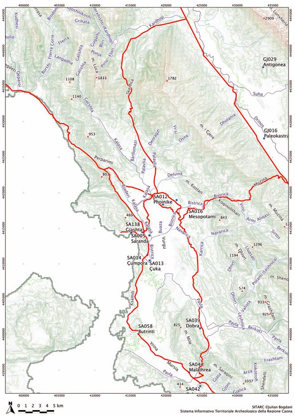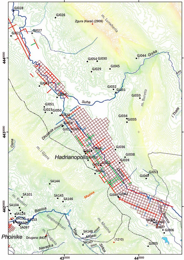 The events that led to the destruction of Antigonea and to the genesis of a new urban center on the banks of the river Drinos in Hadrianopolis are well known and in part still under debate, as we have already said. Hadrianopolis and its territory is an object of a research project of the University of Macerata, directed by Roberto Perna in agreement with Dhimiter Çondi, for the Institute of Archaeology of Tirana. The important results obtained from this research team, always timely published, frees us from having to examine this city and thus allows us to concentrate briefly only on a few topics: the birth of the Roman city in the valley bottom and the Roman territorial infrastructures (viability and centuriation) [30].