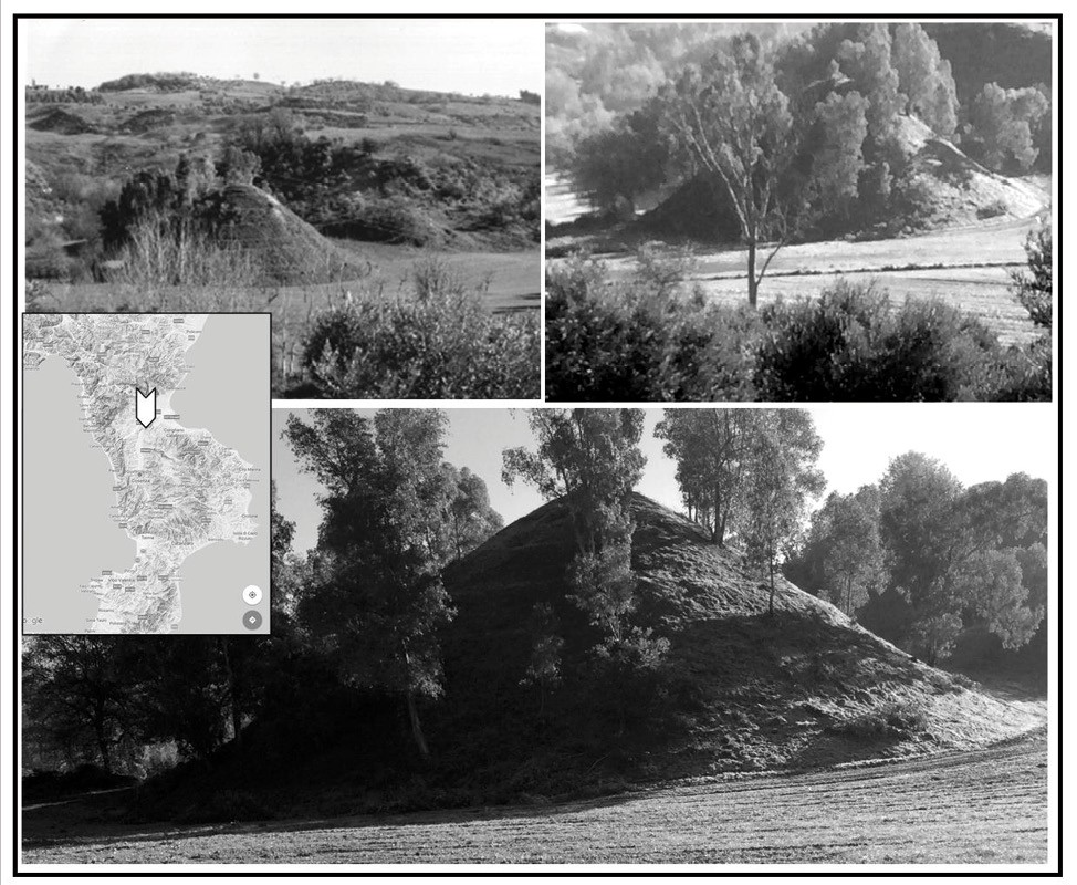 Since January 1986, numerous researchers have carried out investigations on the hillock named “Cozzo Rotondo” (Fig. 1), located in Grifone (southern Italy; Lat. 39.57075539; Long. 16.26709878), within a valley on the right hand side of the River Crati (Rizzo, 1986a, b). After informing the local authorities on the scientific interest of the site, research aimed at understanding the lithological composition and the morphogenetic aspects was undertaken [1]*, thus confirming the partial artificiality of the hillock, made by a modelling of a natural slope.