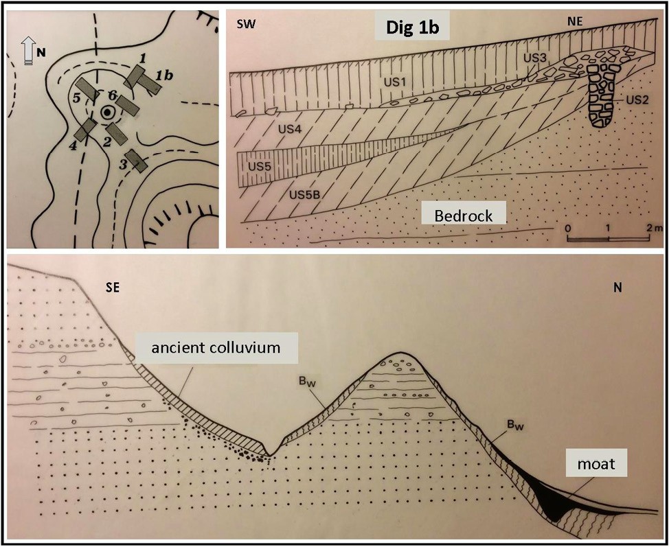 In order to obtain more detailed descriptions on the lithological nature of the hillock, six trenches (Digs 1-6; Fig. 2) were carried out in the spring of 1993 by the colleague Mario Cremaschi, from University of Milan. Their stratigraphic data are reported on Table 1.