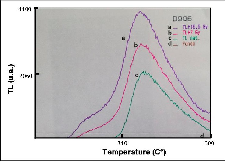 Fig. 8. Results of thermo-luminescence analyses on sample D906.