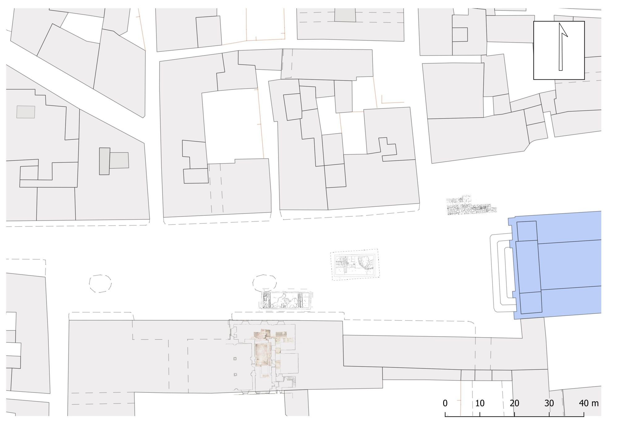16. The presence of the West and North wings has been verified by the archaeological digs; the eastern one, although it has not been explored, can be reconstructed on the basis of the continuation to south of the northern wall. Even though we have no evidence of the South wing, its existence can be reasonably argued.