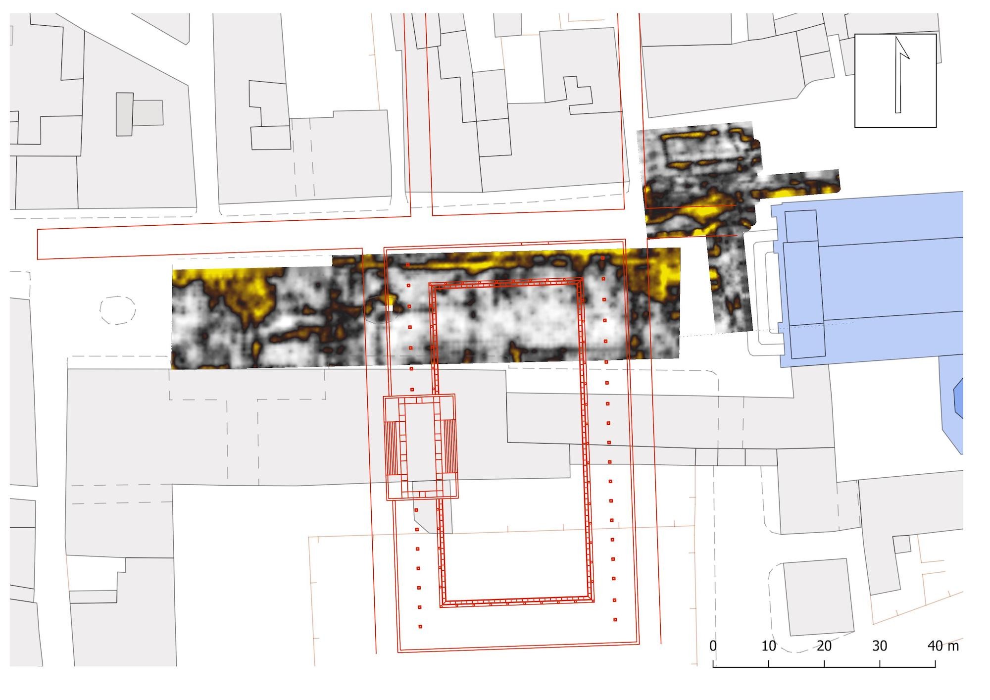 Following the survey, the data processing has highlighted a buried context really hard to understand due to a complex stratification already detected by the archaeological investigation of the square. In fact, as often happens in urban areas that have been continuously inhabited, both ancient and modern structures can be found buried.