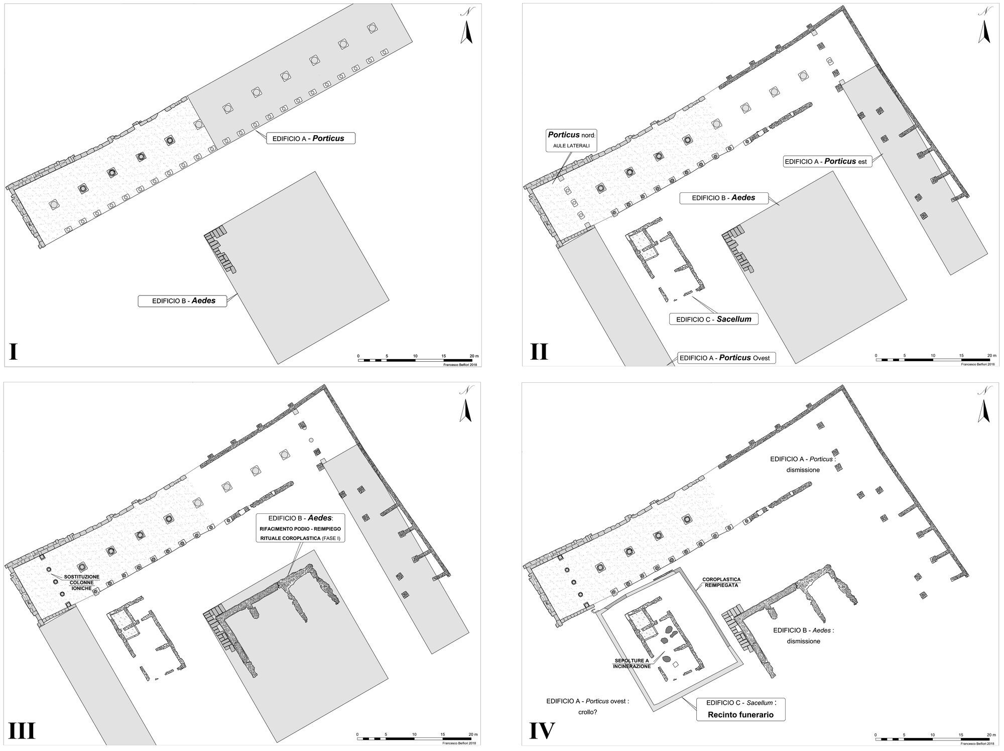Fig. 5: Hypotheses of main construction phases of the Sanctuary (Demma, Belfiori forthcoming