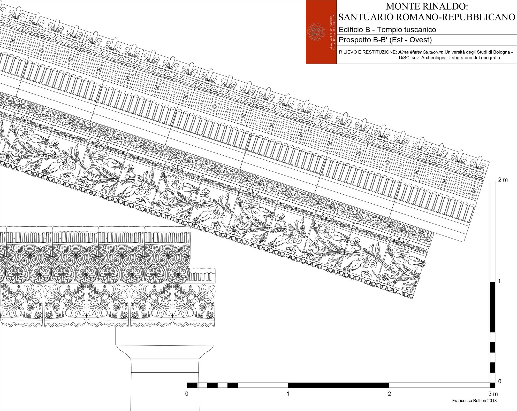 The lower portico was enriched by two lateral spaces with Ionic columns possibly added during 1st century BC [12]. The sanctuary at Monte Rinaldo was destroyed during the Late-Republican period and the site was later reoccupied in the early Imperial period by a rural complex that reused some of the architectural decorations as building material. An important portion of this structure emerged during the 2018 excavation season in the area where the western part of the portico is supposedly located and future excavations will continue to examine this area.