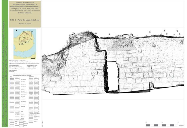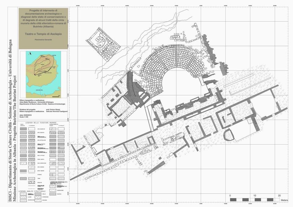 In the fall of 2015 and 2016, the first two Campaigns of Archaeological Research and Topographic Documentation of the joint project between University of Bologna and Institute of Archaeology of Tirana were carried out in Butrint, in agreement with the colleagues of the Butrint National Park. The aim of this research programme was to resume the study and documentation of some important urban contexts such as the area of the Sanctuary of Asclepius, particularly of the Temple on the upper terrace, and of the fortification system surrounding the Acropolis. This objective has been pursued not only in order to improve the understanding and documentation of structures with modern methods, but also with to the idea of assessing possible problems of deterioration that could compromise the future conservation of these important monuments of Albanian archaeology, in a site considered a World Heritage by UNESCO.