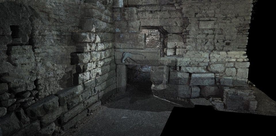 Fig. 7. Points cloud of the Lion's Gate with RGB color data (by M. Benfatti)