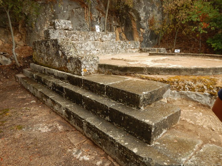 The scarce data justifies the need to resume the documentation, analysis and interpretation of the building, in order to better understand its architectural development and its relationship with the surrounding urban context. At the present state of research, we can only assume that the Temple was supposed to be a tetrastyle prostyle building of which remains only the foundation. It stood on a mighty terracing overlooking the Theatre and probably had to be accessible from the east. The terracing was obtained by regularizing the outcropping rock and it is supported by a containment wall in pseudo-isodomic masonry. In the back part, the rock wall has been carved in order to obtain the necessary space for the construction of the rear part of the cell. The rear part of the euthynteria (with the blocks equipped with the characteristic tenons for the installation), of the crepidoma and the stylobate, as well as part of the cell, are also still intact. The latter is bounded by perimeter walls in a square, intact for a row on the sides and at most for three rows on the back wall and in some points tied with dovetail grappas. The floor, with at least two different building phases, as well as the base of the cult statue has large sections which are still intact. Just in front of the base there is a rectangular gap caused by the removal of the emblem with the representation of the snake, currently visible in the archaeological museum of Butrinto (E.G.).