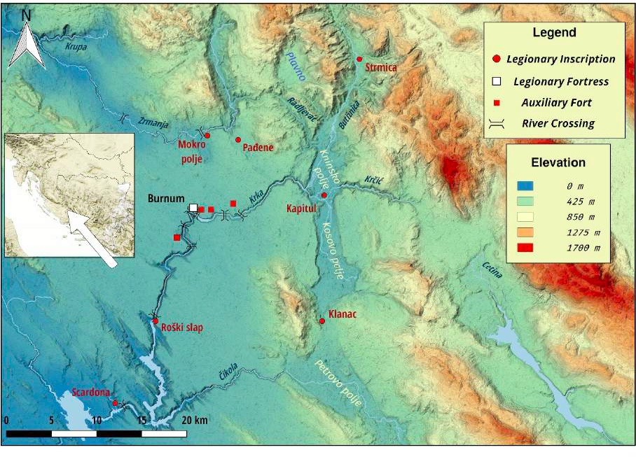 Fig. 4. Military occupation of the middle and upper Krka valley in Roman times (Cesarik 2017, 364)
