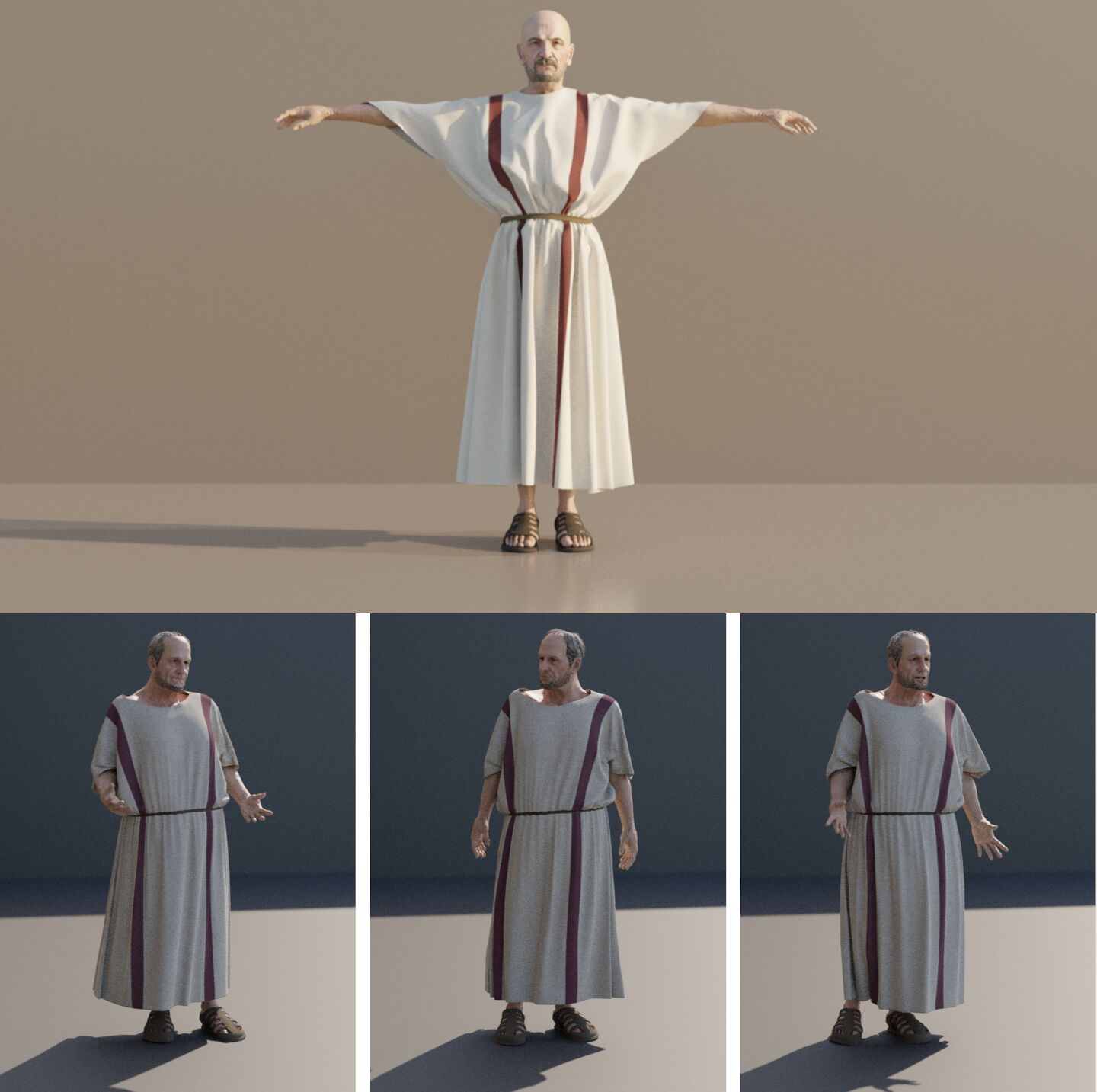 This stage has been mainly done with commercial software and therefore we will limit to briefly indicate the workflow followed in this project to create, clothe and animate the virtual characters.