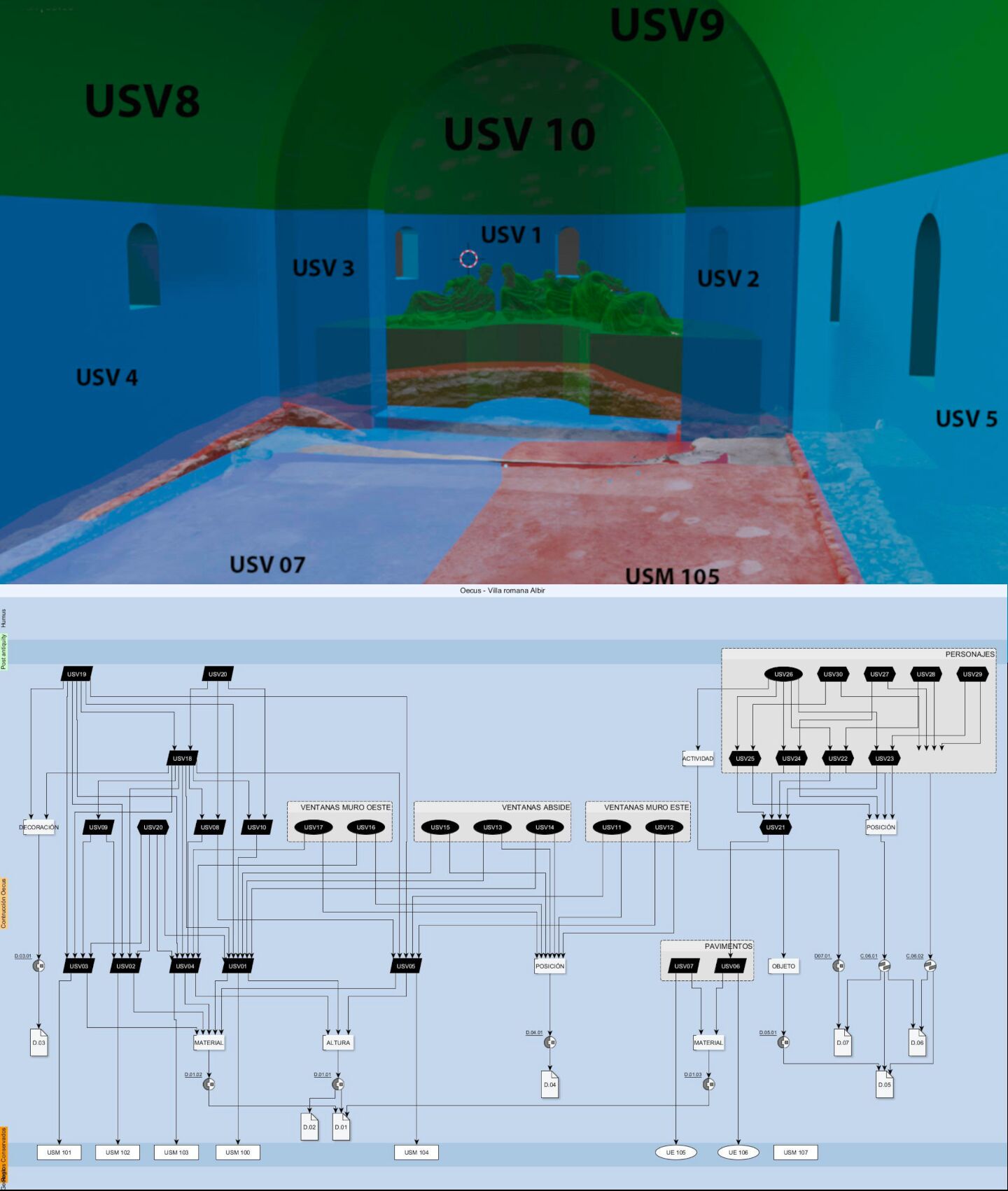 The workflow with the Extended Matrix has been widely described by its author in the resources available on the official web site (Demetrescu 2022b http://osiris.itabc.cnr.it/extendedmatrix/index.php/learn-em/; 2022c http://osiris.itabc.cnr.it/extendedmatrix/index.php/nodes-of-the-em/) and in scientific publications (Demetrescu 2015, Demetrescu 2021), so we will briefly describe the steps that we have followed in applying this tool to the virtual reconstruction of the Roman Villa of l’Albir.