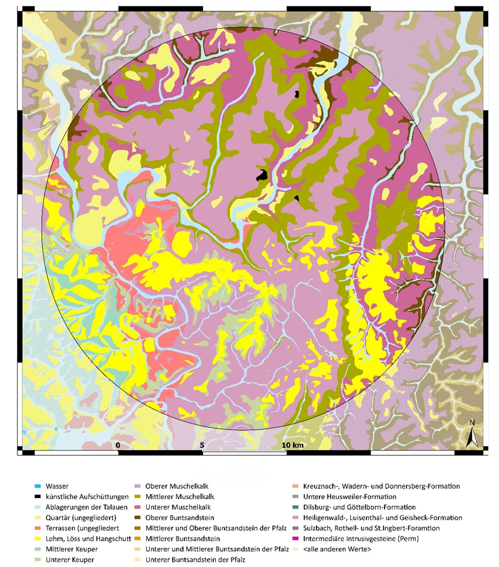 On the German side, the Saar-Blies-Gau adjoins the Plateau Lorrain according to the terminology of H. Schneider (Schneider 1972, 7–10). In this morphostructural unit the large valleys are incised into the Lower, Middle and Upper Muschelkalk suite with gentle slopes and rounded hills.