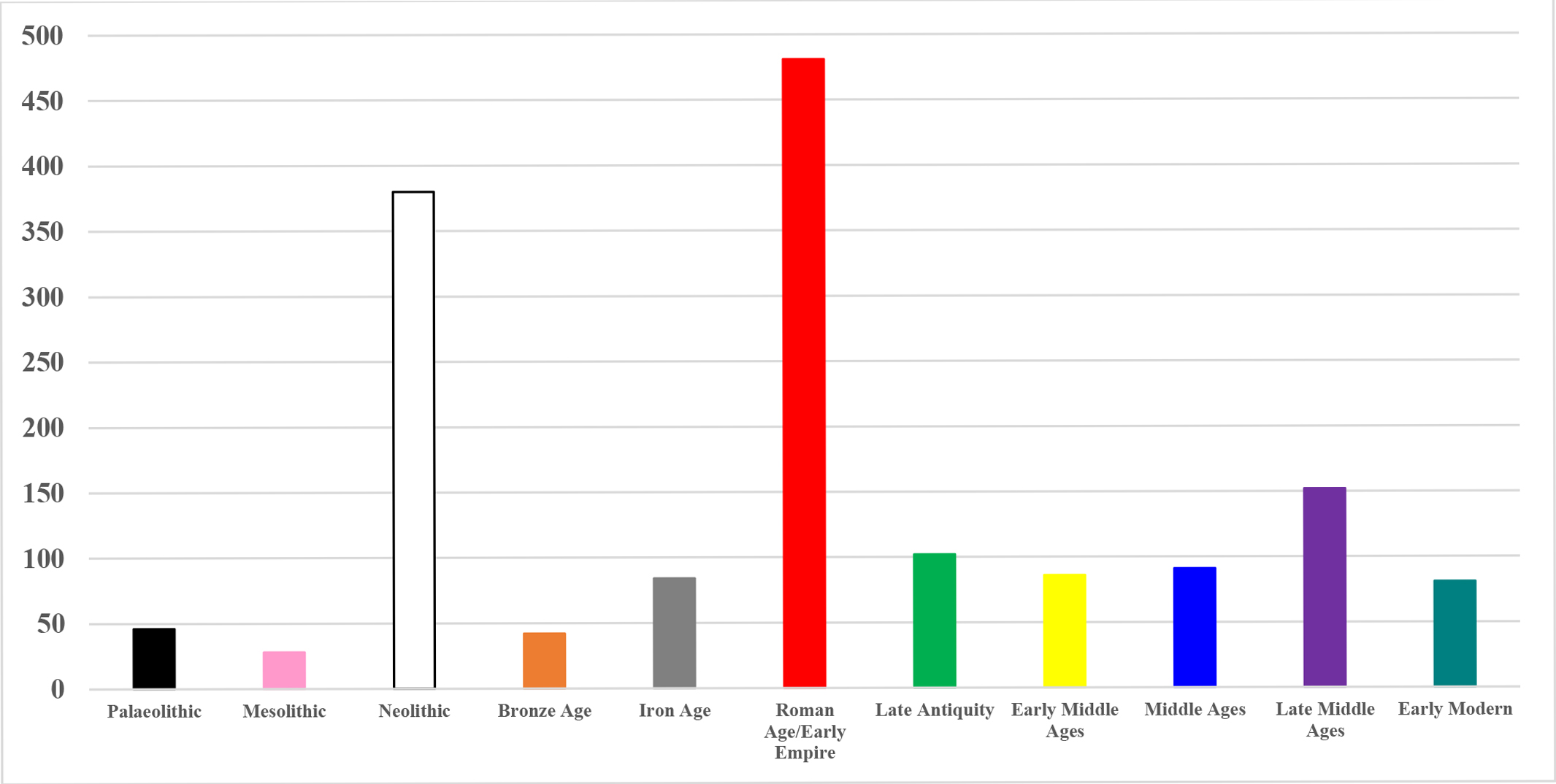 Figure 3. Number of sites divided by chronology.