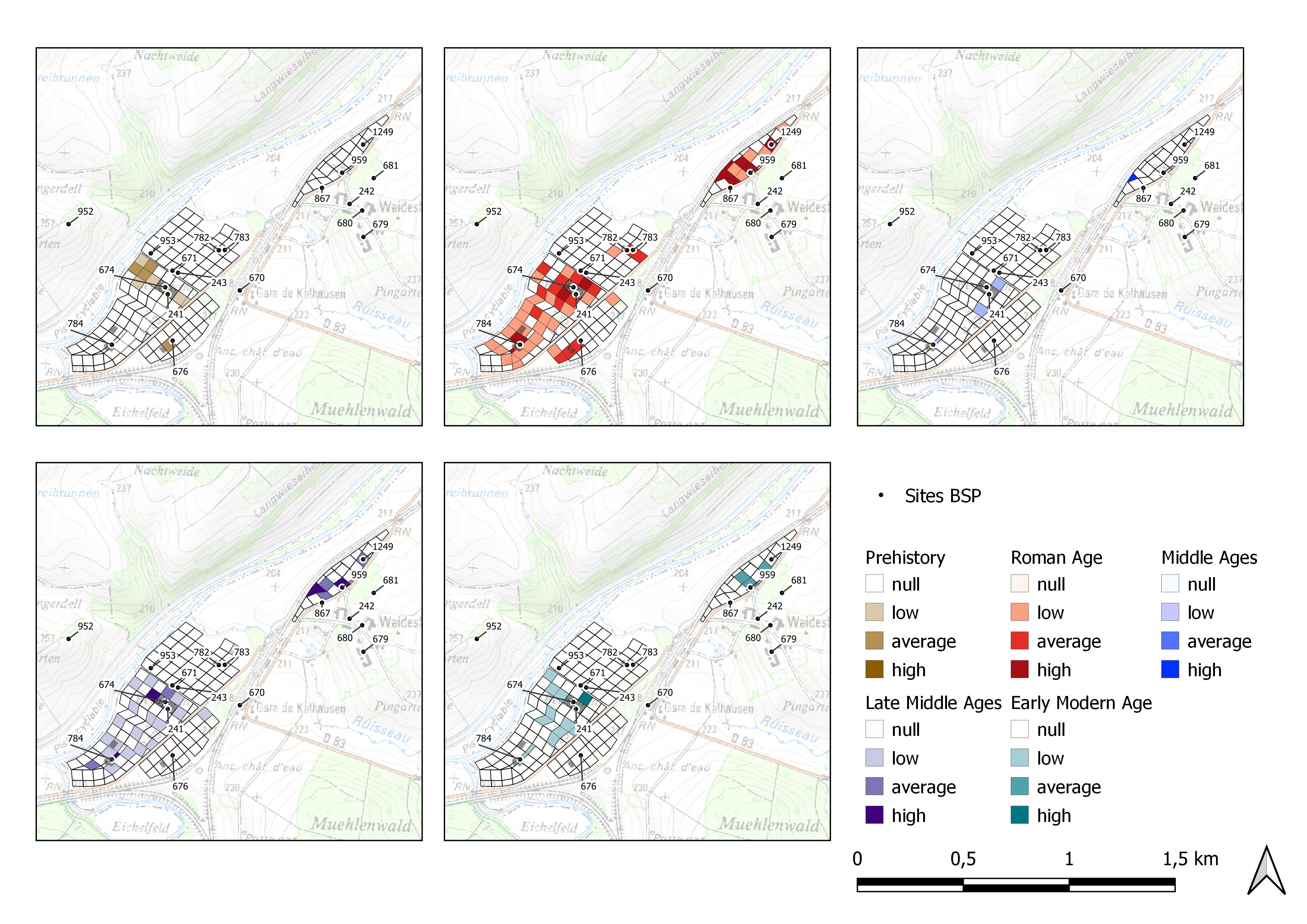 The result is therefore weighted according to the conditions of the surveys. This formula was applied for ceramic artefacts and for the following chronologies: