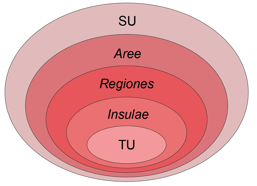 As an example, the following elements can be considered TU: individual domus; temples; honorary bases in the Forum; tabernae; or, more broadly, all the buildings — or preserved parts of them — considered independent, regardless of their function, extent or monumentality.