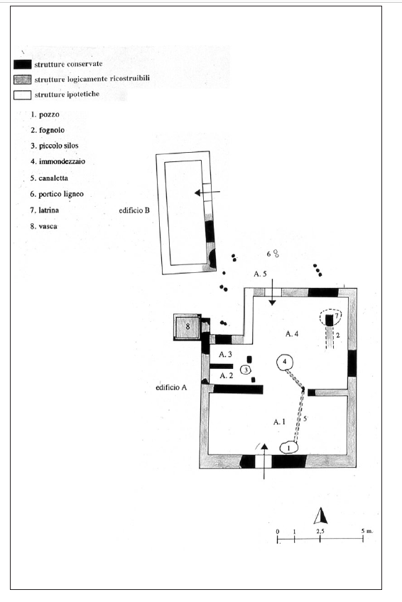 TU can be divided into periods, i.e., the timeframe during which a building maintains its planimetric and functional system unchanged; any change to the articulation of the structure that substantially varies the planimetric organization (but not the function) implies a new period. Periods are made up of different phases. The phasesare distinguished according to the presence of minor changes, compared to those occurred for the distinction between periods. They do not alter the planimetric system of the TU (e. g. opening / closing of doors and / or windows; changes to the decoration or the general equipment of a building). In some cases, the available documentation permits us to determine absolute chronologies for single phases.
